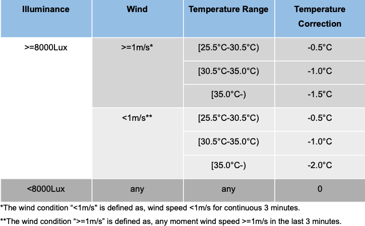 b. For the transitional area of illuminance when 24.5°C < TWS2000 ≤ 25.5°C and 3000Lux < IWS2000 ≤ 13000Lux: